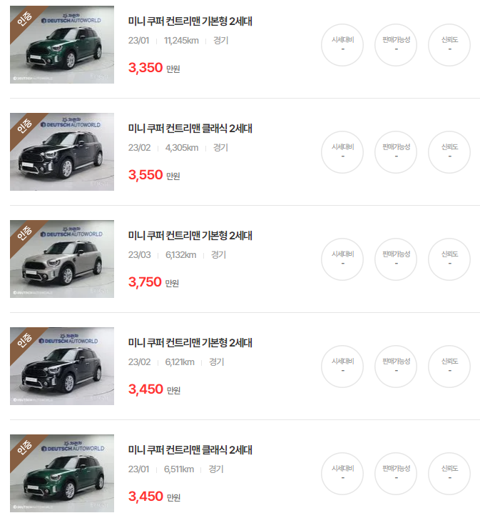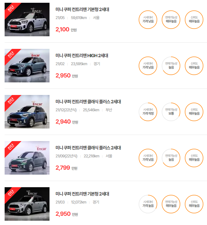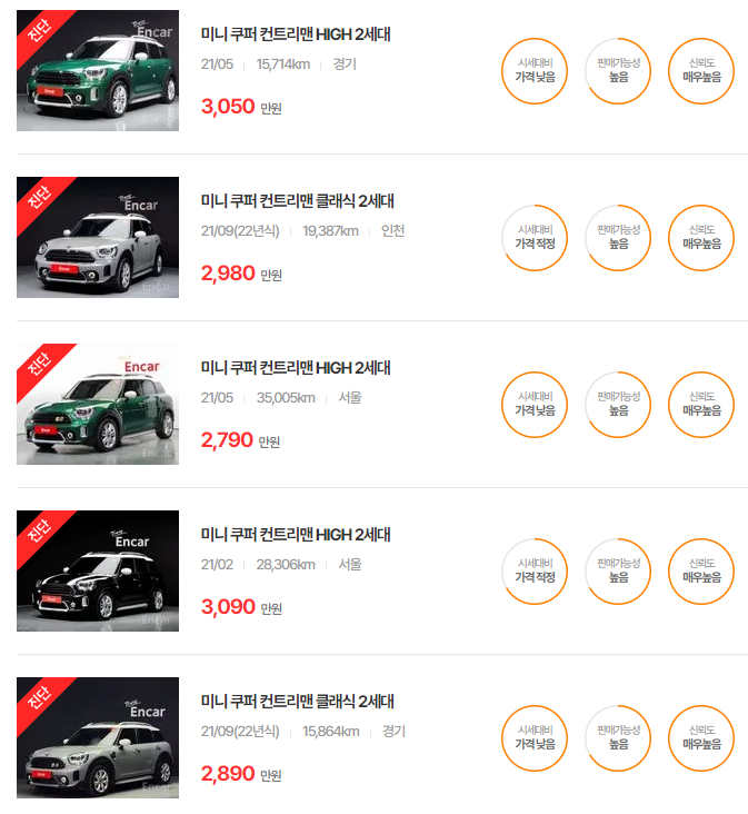 미니 컨트리맨의 중고차 가격, 연식별 시세, 차량 유지비 등에 대한 정보를 제공했습니다. 이 글이 미니 컨트리맨 중고차를 고려하시는 데 도움이 되었길 바랍니다.