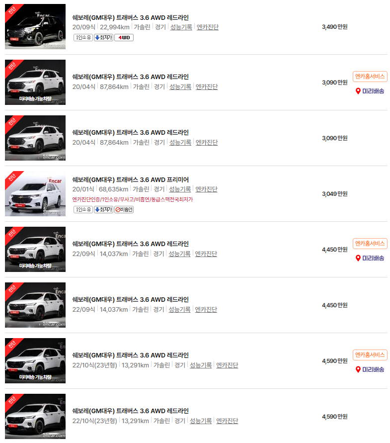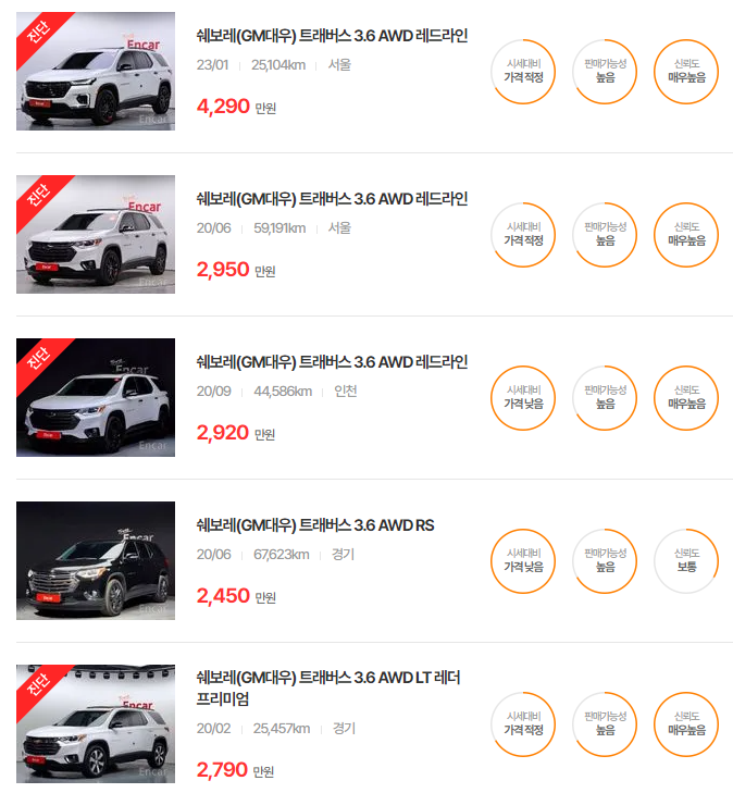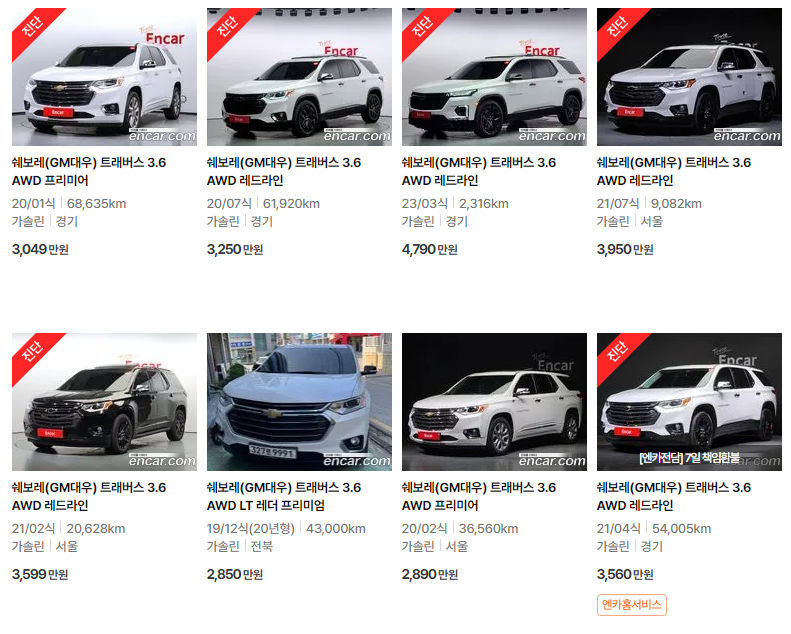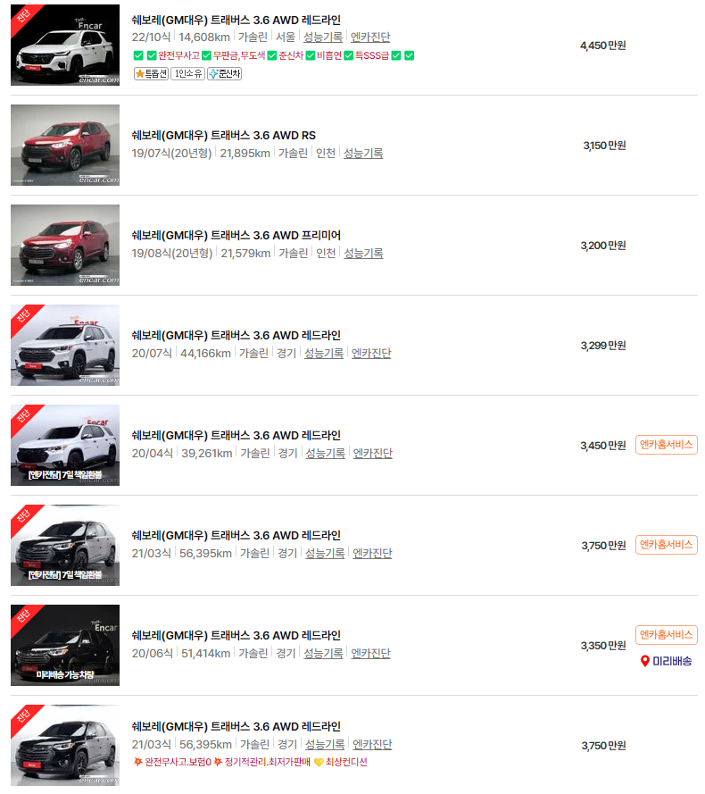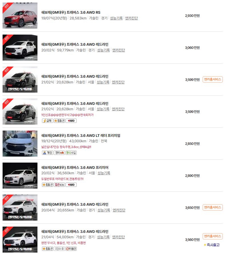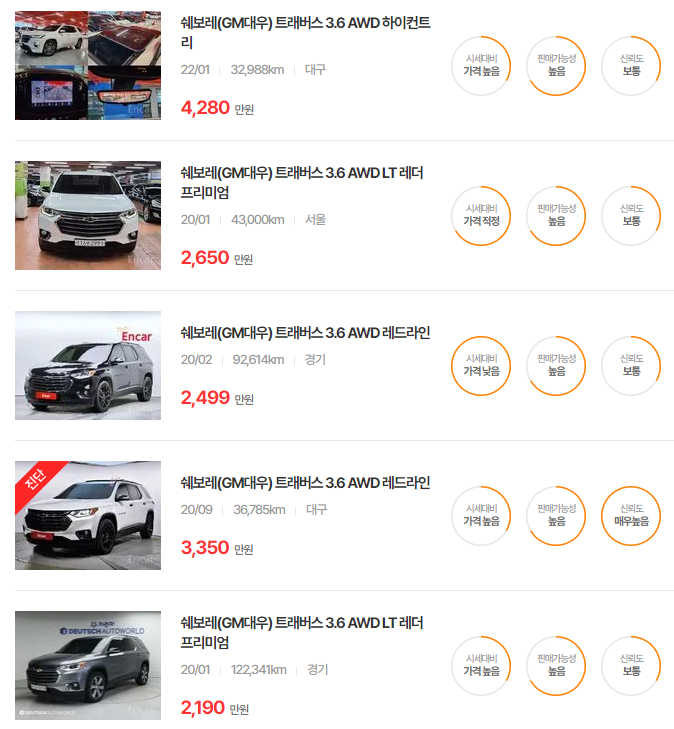 쉐보레 트래버스 중고차 가격