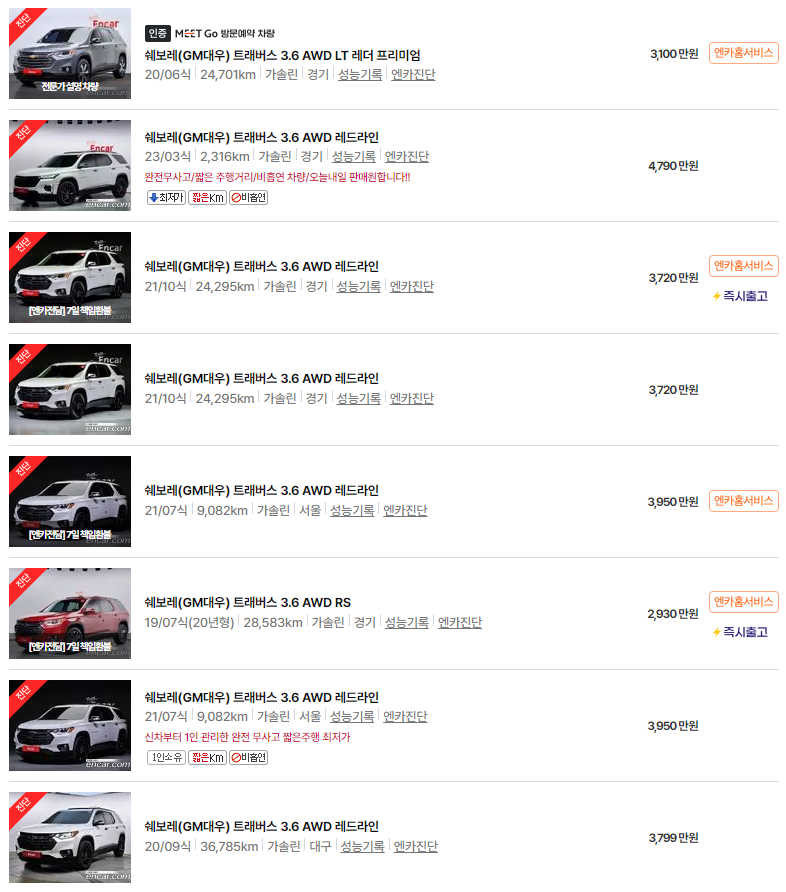 쉐보레 트래버스 중고차 가격