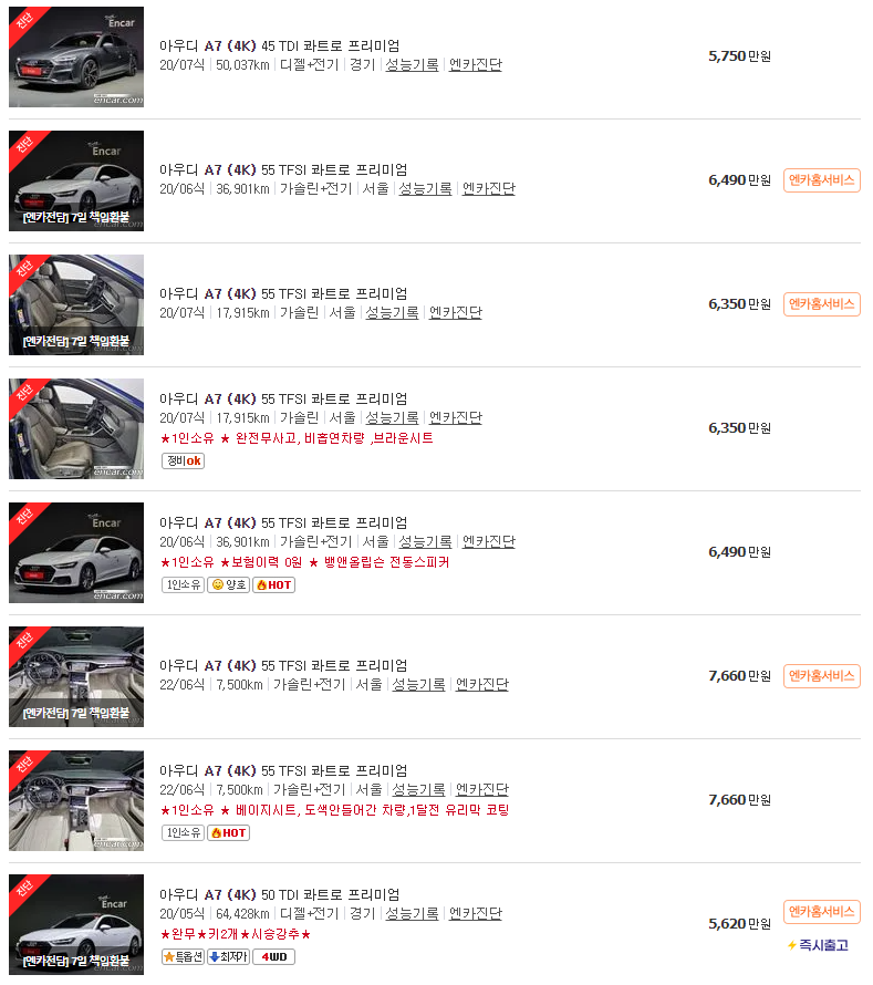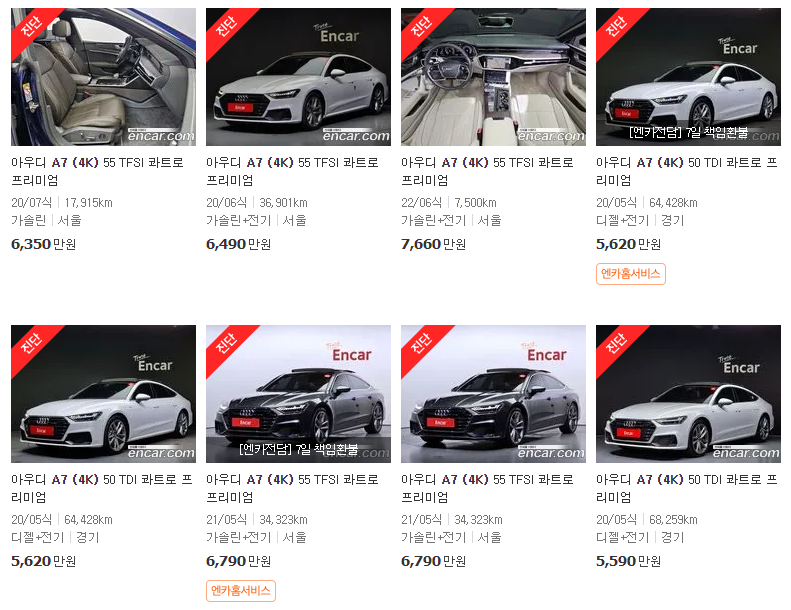 아우디 A7에 대한 정보를 얻으셨다면, 다음의 차량도 함께 비교해보시길 권장드립니다. 각 차량별로 시세 표를 제공하고 있으니 확인해보세요.
