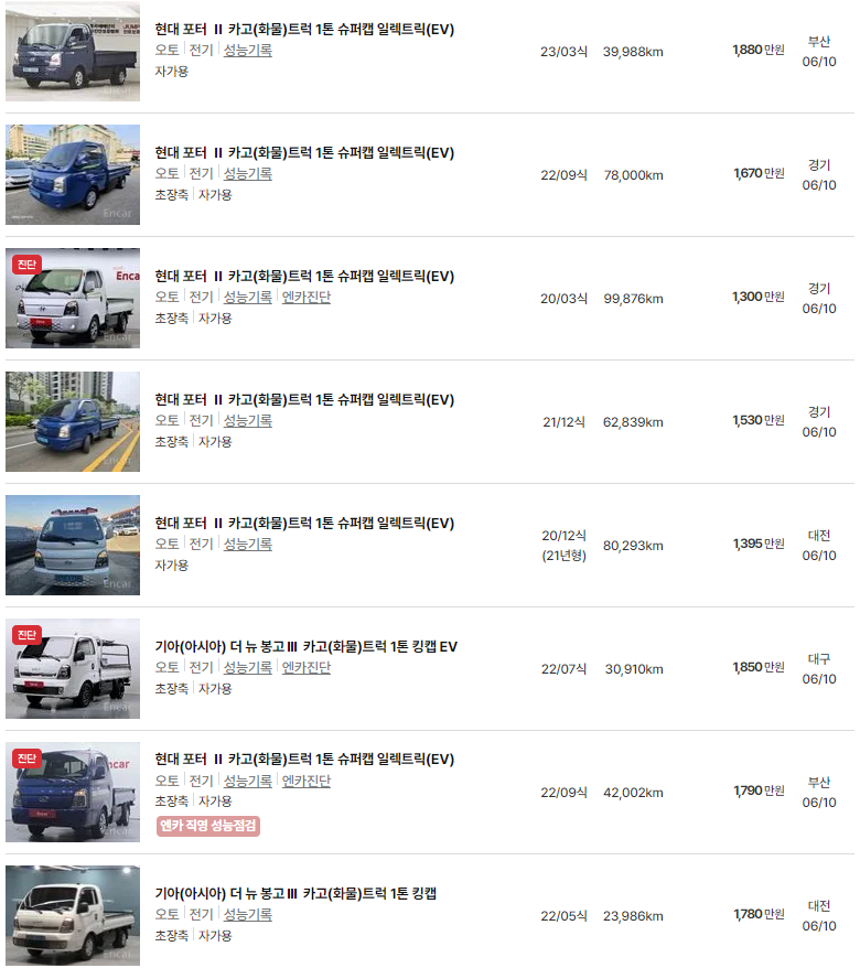 개요 멘트: 현대자동차의 2025 포터2 일렉트릭은 소형 상용차 시장에서 주목받고 있는 모델로, 그 실용성과 효율성으로 많은 관심을 받고 있습니다. 외관은 깔끔하고 현대적인 디자인을 자랑하며, 실내는 신뢰성 있는 구성으로 편안한 승차 경험을 제공합니다. 성능 면에서는 강력한 전기 모터로 조용하면서도 강력한 주행이 가능하고, 다용도 활용이 가능한 차량으로 자리잡고 있습니다. 이 글에서는 2025년 6월 기준의 최신 중고차 시세 정보를 바탕으로, 2025 포터2 일렉트릭의 전반적인 특징을 소개합니다.