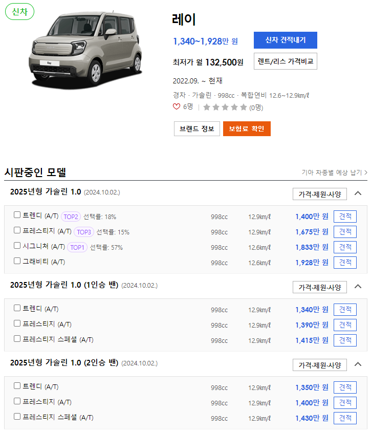 2025 레이 가격