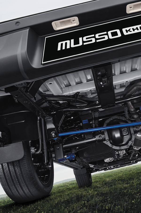 무쏘 스포츠의 외관은 현대적인 감각과 강인한 인상을 줍니다. 대형 그릴은 시각적인 포인트로 작용하며, LED 헤드램프는 날렵한 이미지를 더합니다.