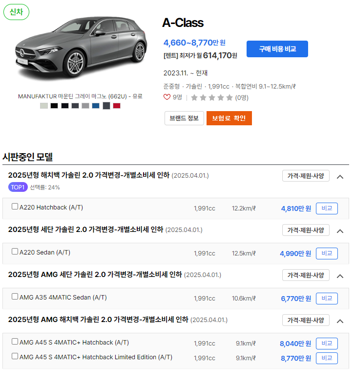 2025 벤츠 A클래스의 가격은 4,710만 원부터 7,980만 원까지 다양합니다.
