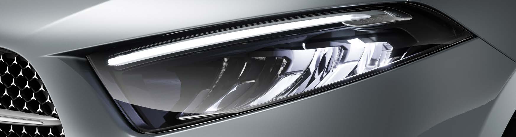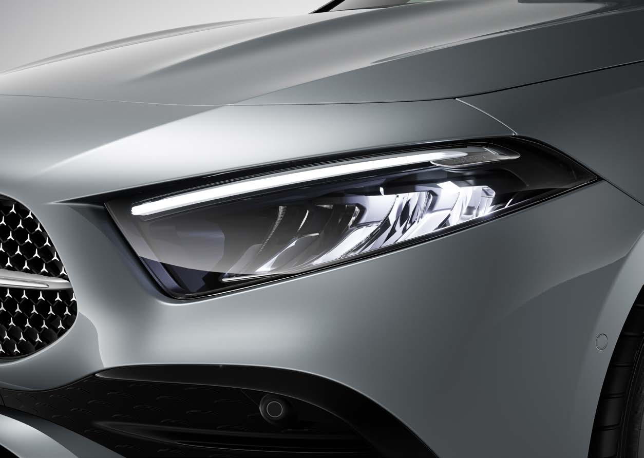 벤츠 A클래스의 외관 디자인은 기민한 라인과 대담한 전면부 grille로 특징지어집니다.