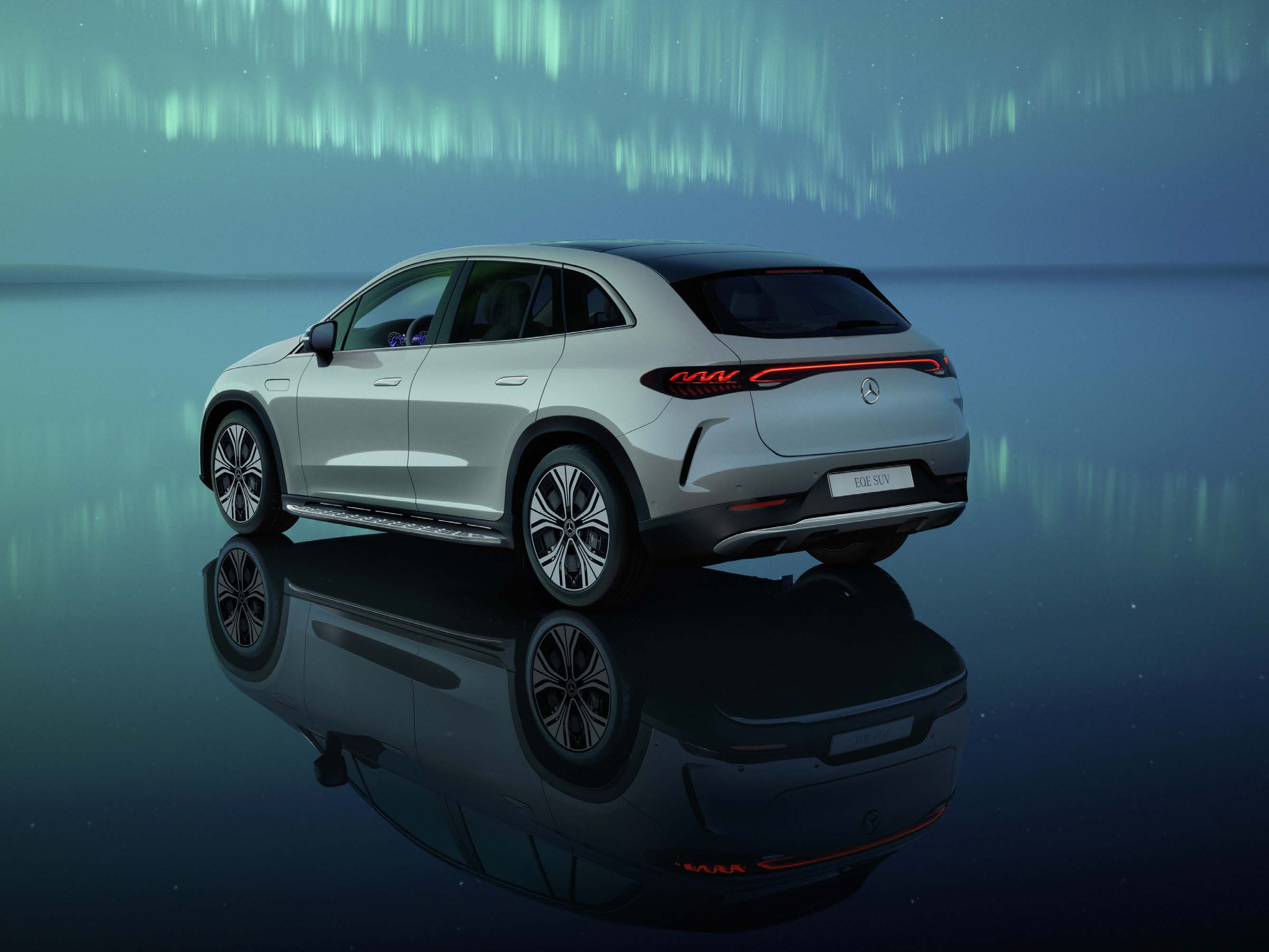 EQE SUV는 고급스러운 LED 라이트와 공기역학적으로 설계된 차체가 돋보입니다.