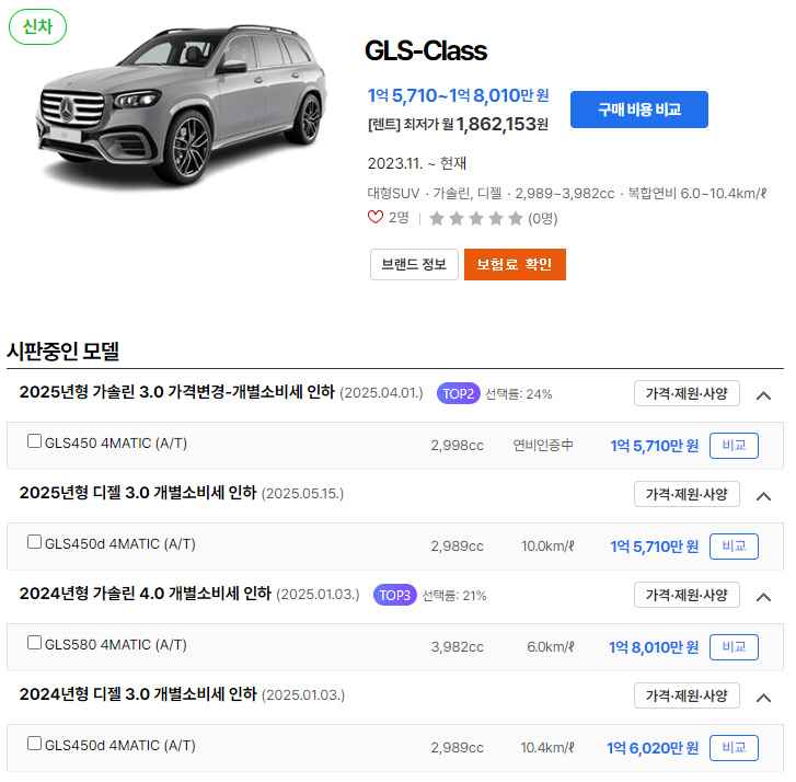 2025 벤츠 GLS450d 유지비