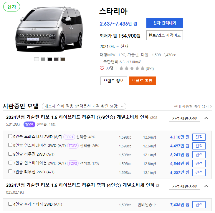 스타리아를 선택할 때, 옵션 구성과 가격대를 비교해보면 나에게 맞는 트림을 찾기 쉬워집니다.