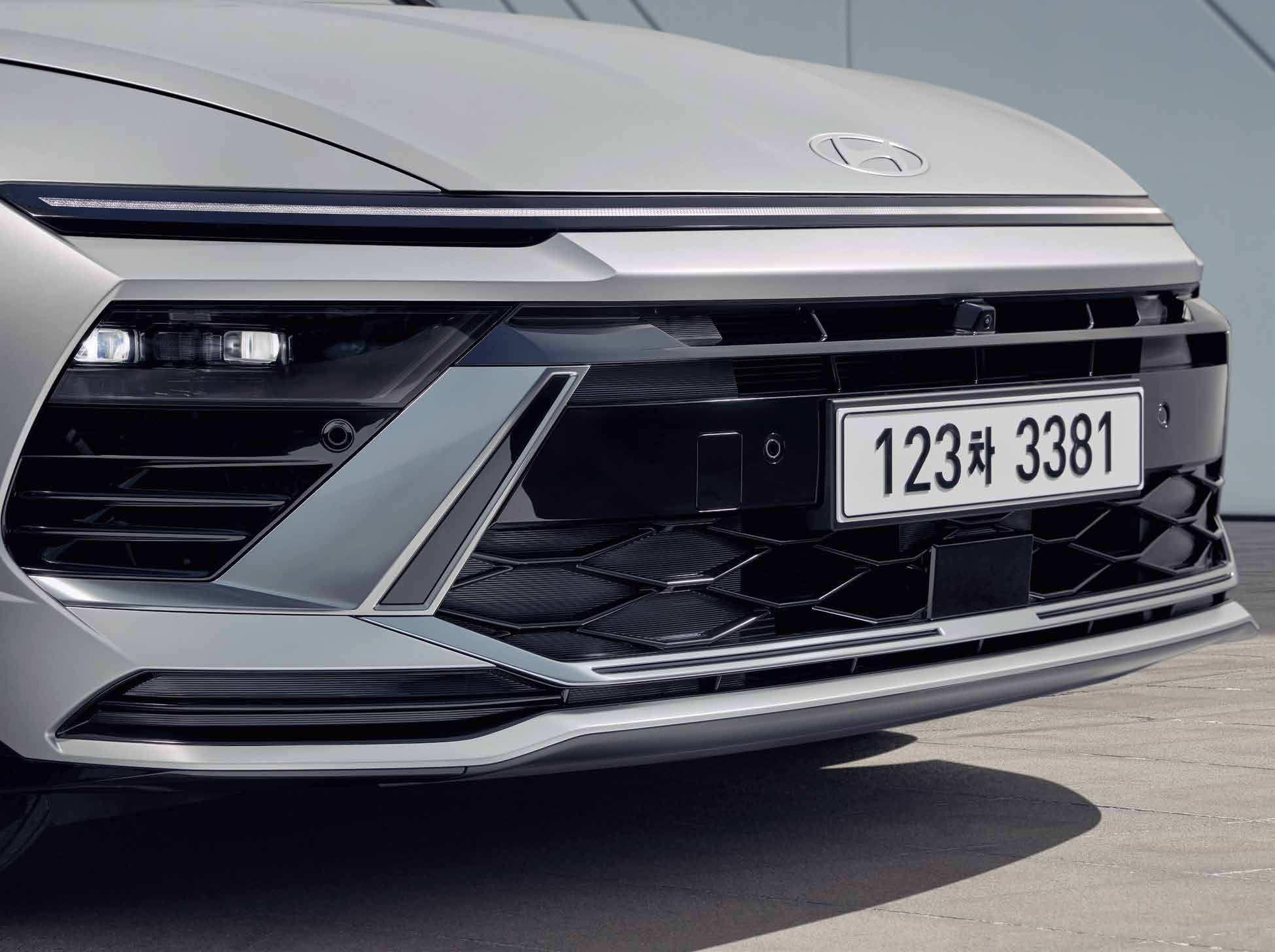 2025 쏘나타는 현대적인 감각으로 디자인된 세련된 외관을 자랑하며, 프런트 그릴과 헤드램프의 조화가 매력적입니다.