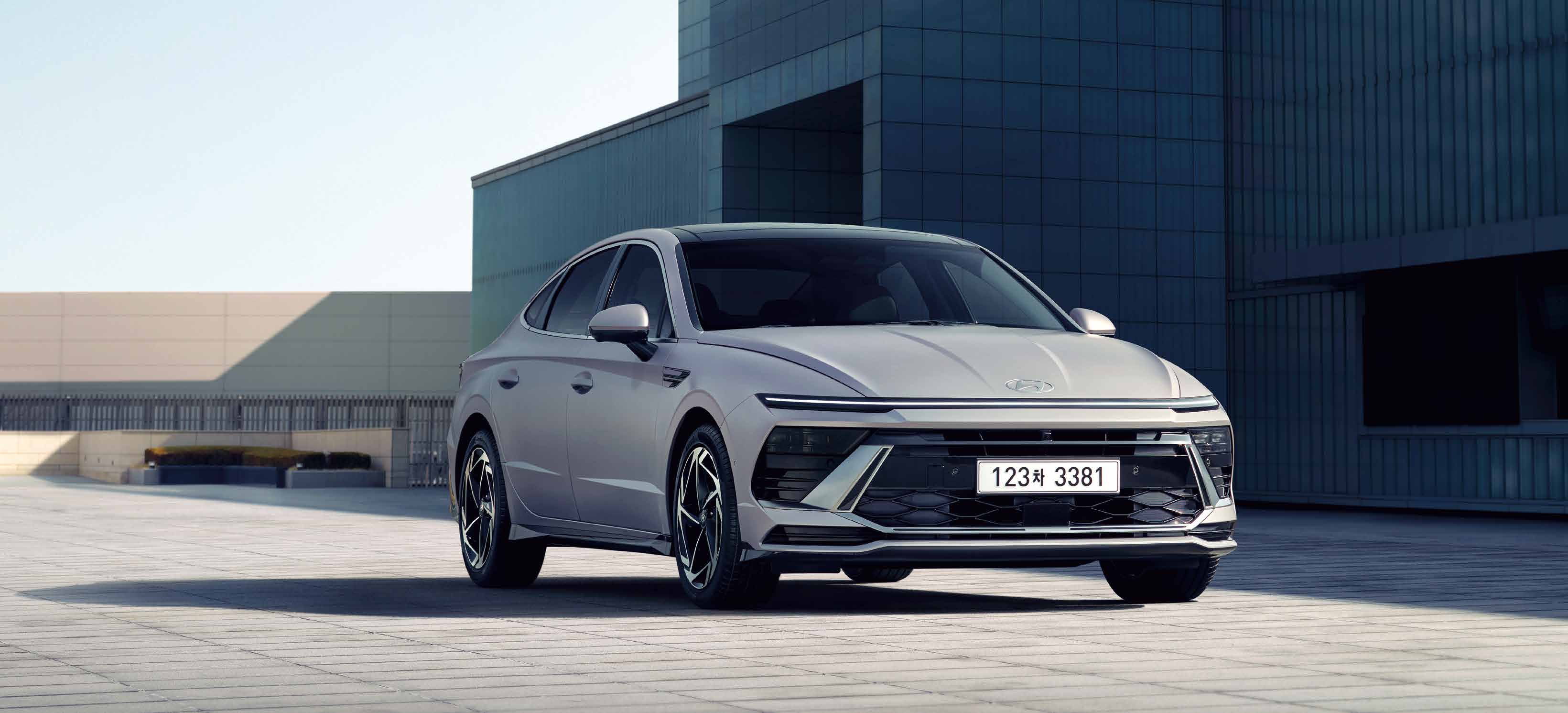 2025 쏘나타는 현대적인 감각으로 디자인된 세련된 외관을 자랑하며, 프런트 그릴과 헤드램프의 조화가 매력적입니다.
