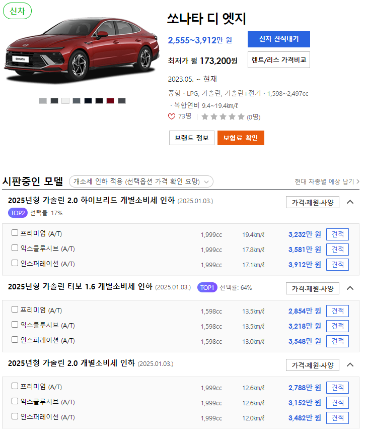2025 쏘나타는 가격과 연비, 제원 및 유지비 면에서 뛰어난 경쟁력을 갖춘 차량입니다. 해당 차량 구매에 고민 중이시라면 위 정보를 참고해보시길 바랍니다.