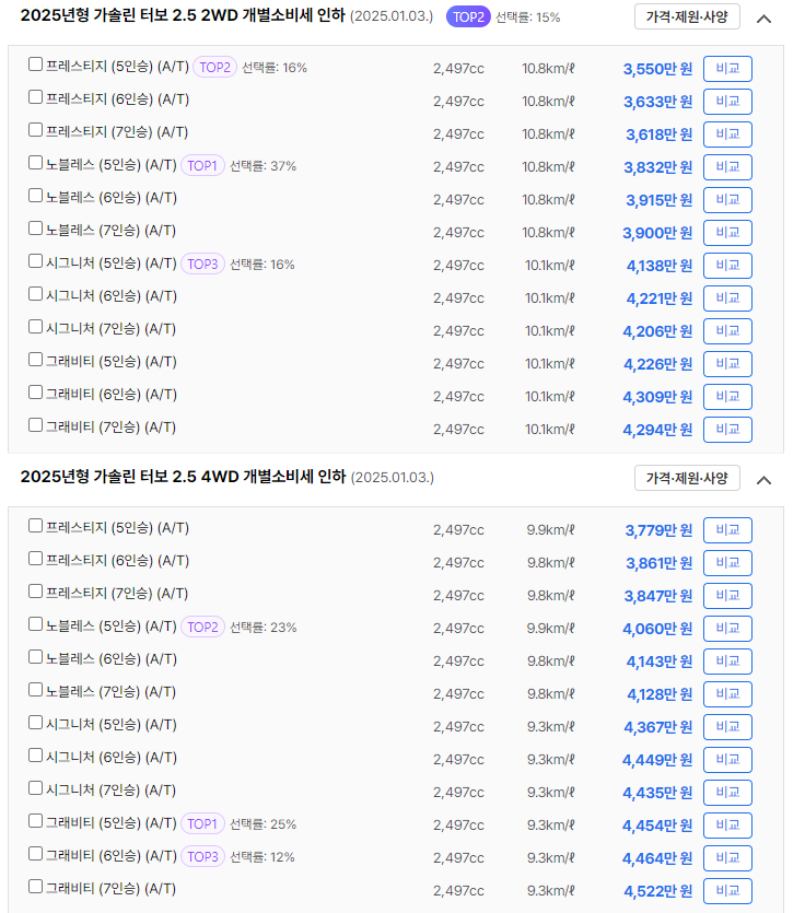 - 가솔린 터보 2.5 2WD: