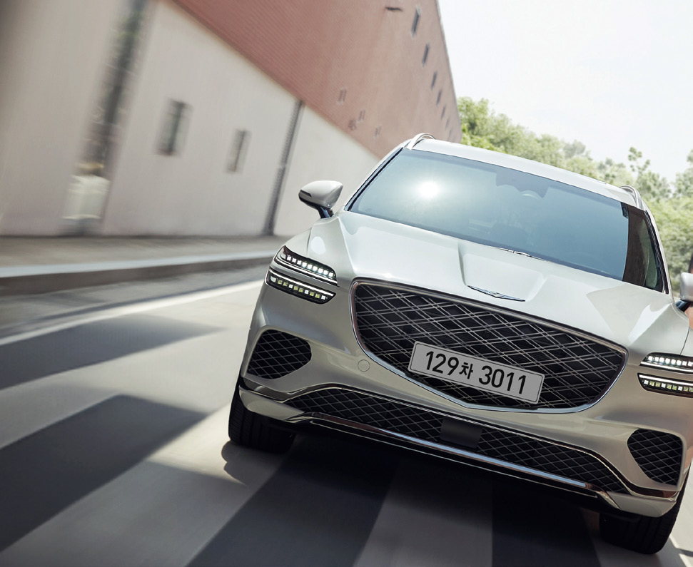 제네시스 GV70의 외관은 세련된 라인과 감각적인 디테일이 돋보입니다.