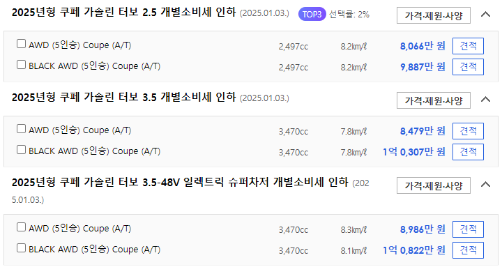 - 쿠페 가솔린 터보 2.5 AWD