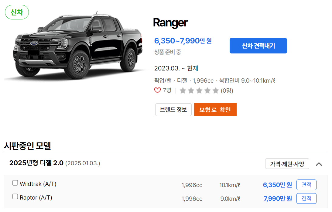 마무리하자면, 2025 포드 레인저가격, 연비, 제원유지비를 꼼꼼히 고려해야 하는 차량입니다. 해당 차량 구매에 고민 중이시라면 위 정보를 참고해보시길 바랍니다.