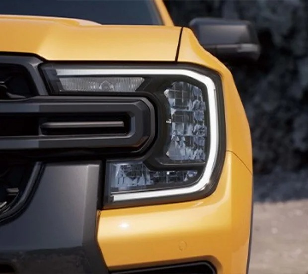 포드 레인저는 강인함과 모던한 느낌을 모두 갖춘 디자인을 자랑합니다. 대담한 그릴과 헤드램프 디자인이 특징적입니다.