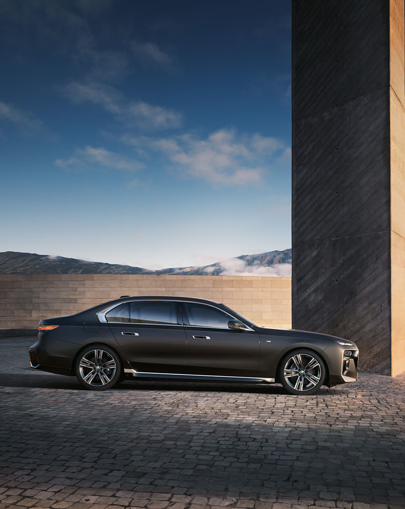 비엠더블유 7시리즈의 외관은 날렵함과 우아함이 조화롭게 결합되어 있으며, 세련된 디자인이 특징입니다.