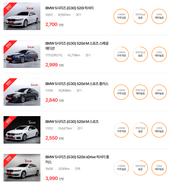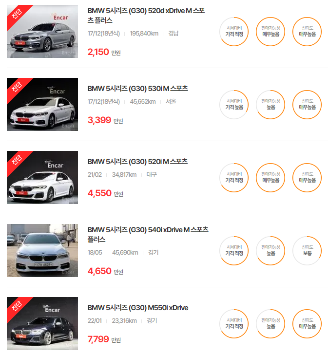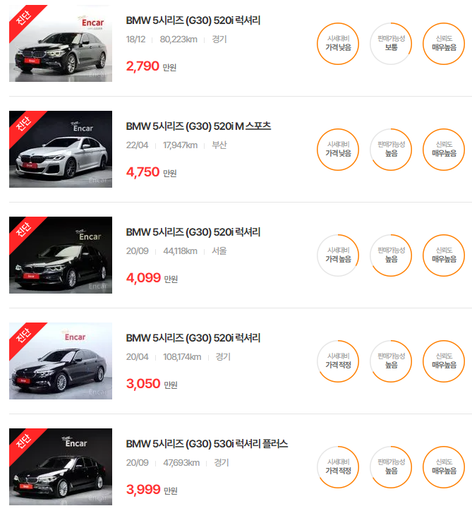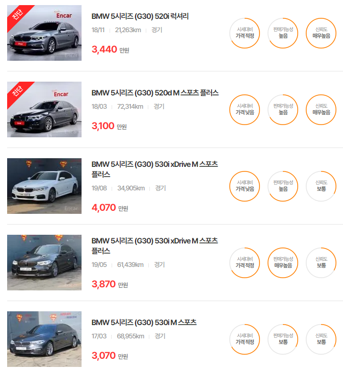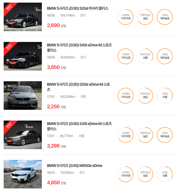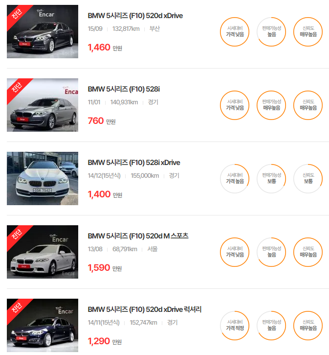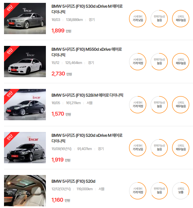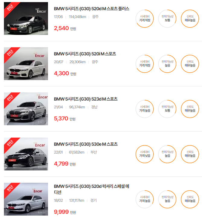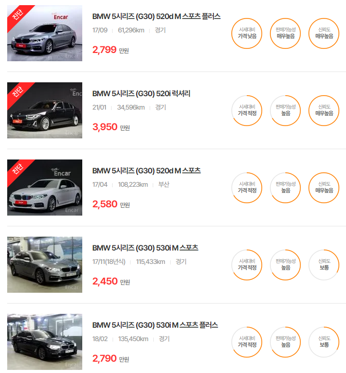 BMW 5시리즈 중고차 가격