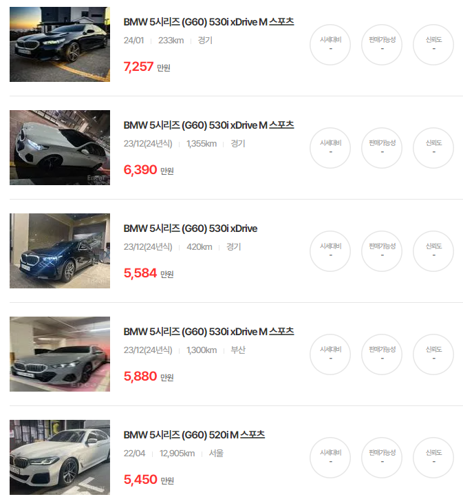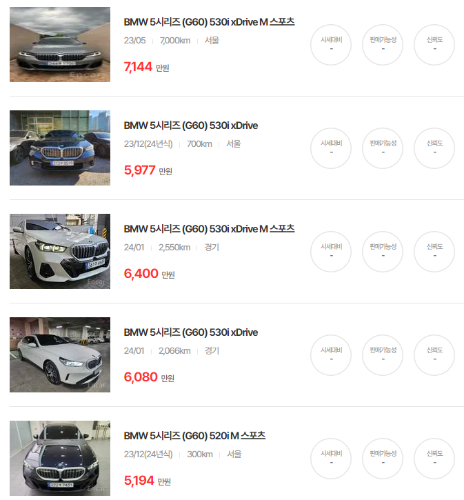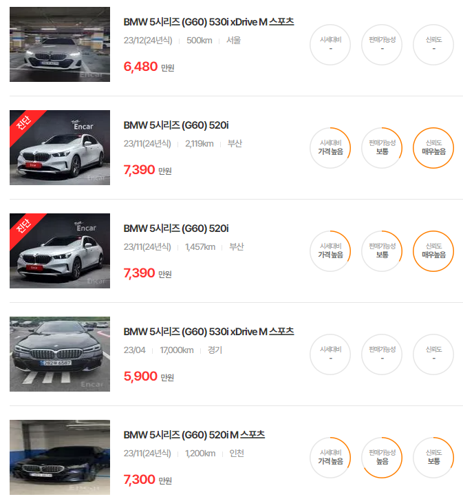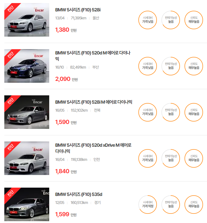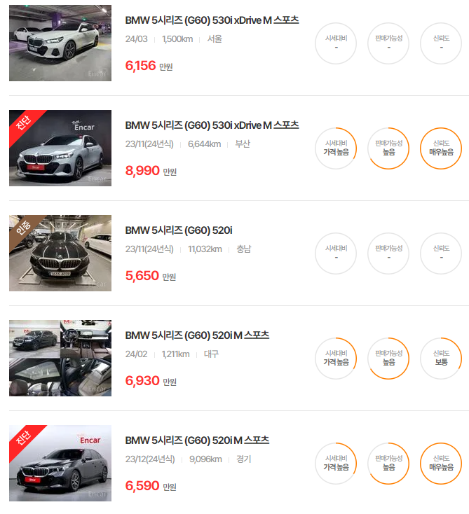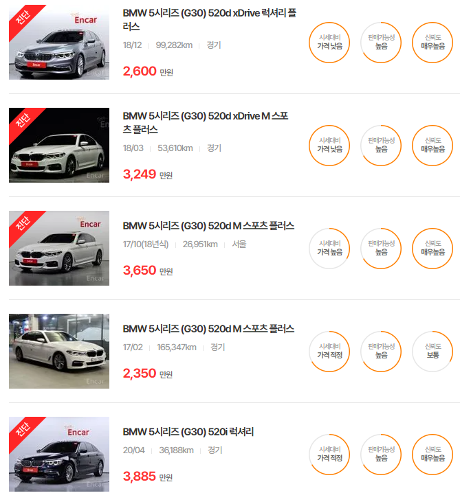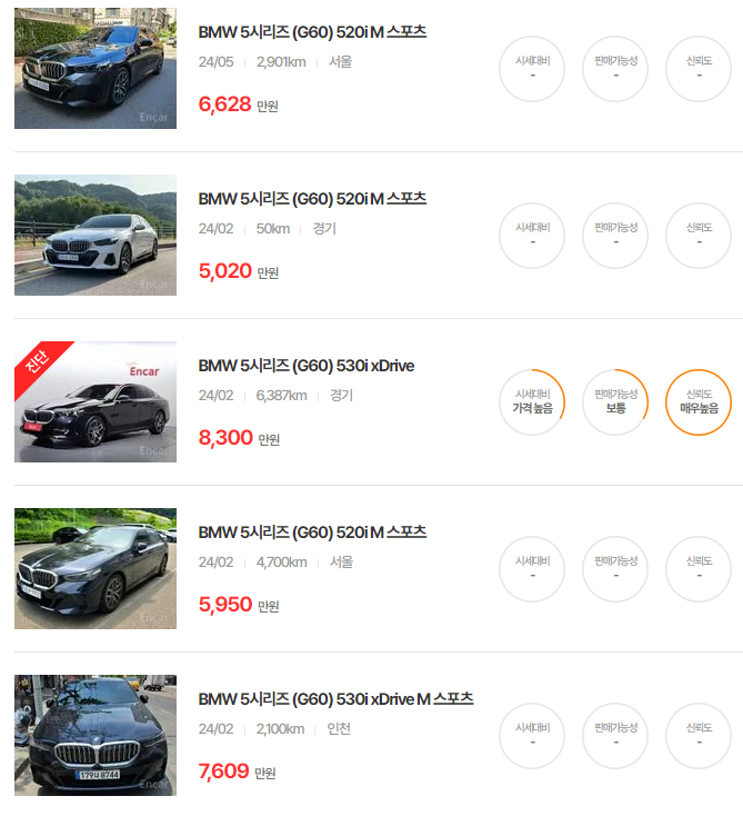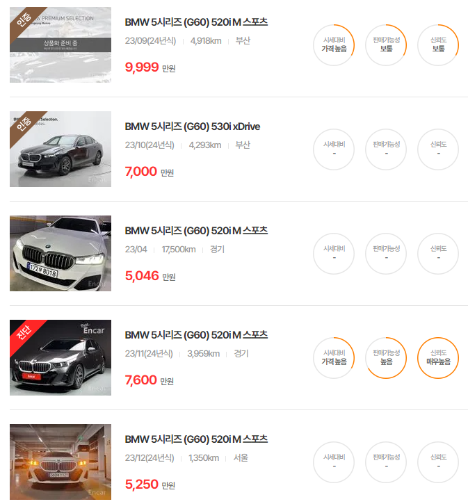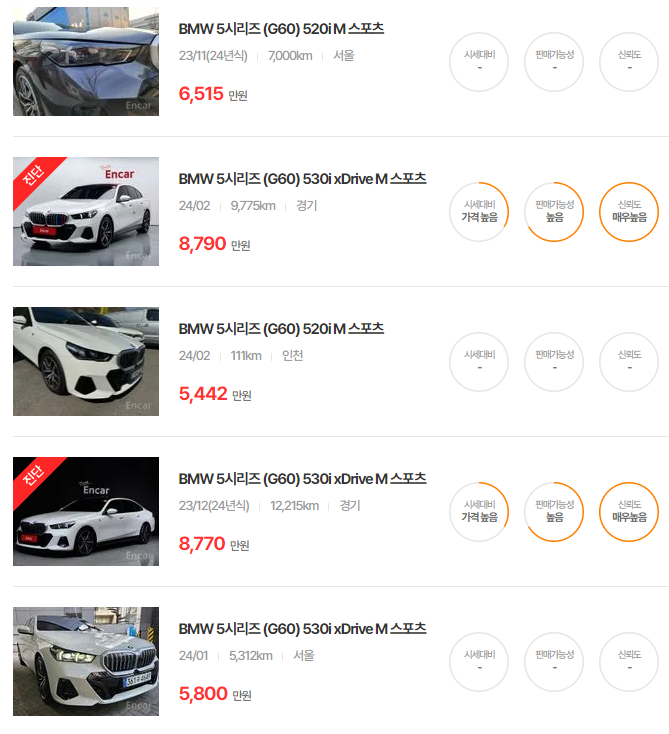 BMW 5시리즈 중고차 가격