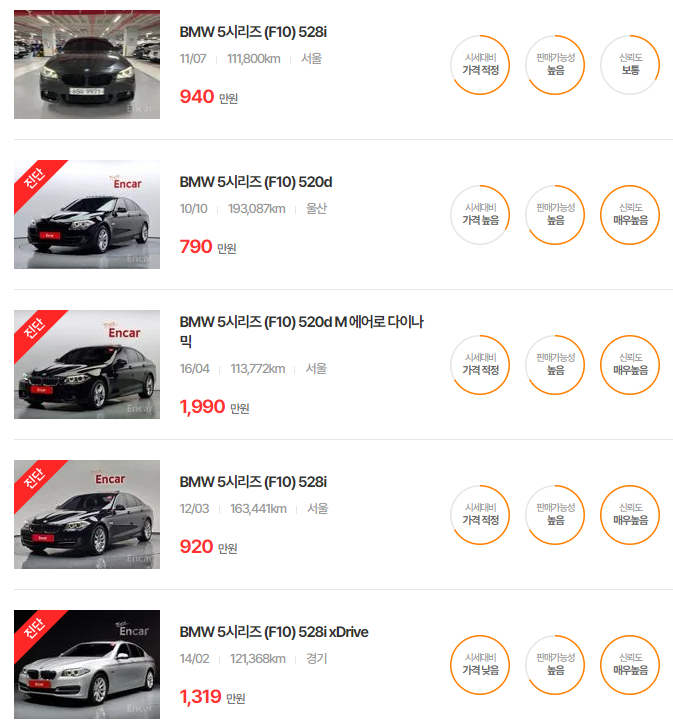 BMW 5시리즈 중고차 가격